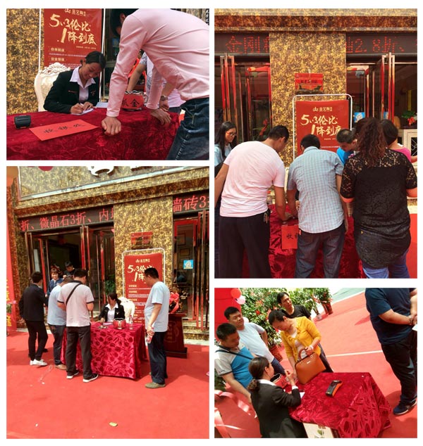 鑼鼓喧天,禮炮齊鳴,彩旗招展,高朋滿座。5月1日 -3日,陶瓷一線叼嘿免费看的APP叼嘿软件下载大全陶瓷磚河南濮陽專賣店盛裝開業!開業期間,進店即送精美禮品一份、全場2.5折起、預存500抵1000,下單滿相應金額即送衛生間小地磚、送美縫、送叼嘿免费看的APP坐便器等,豪禮送不停,優惠力度前所未有,钜惠全城。附近的消費者慕名而來,現場門庭若市,異常火爆。