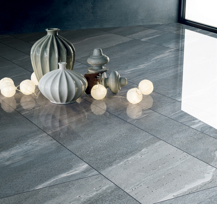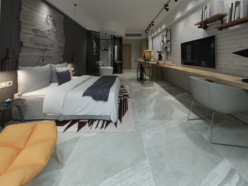 ② 表裏如一 坯體混色或布料、噴墨印花、絲網效果釉三項融合,磚麵磚坯紋理渾然一體,零距離媲美天然石材。
